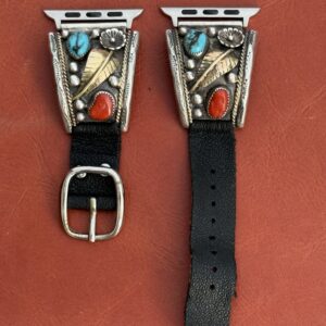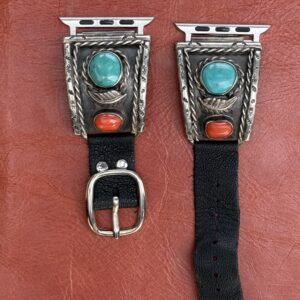 Vintage Sterling Silver with Turquoise & Coral Apple Watch Band