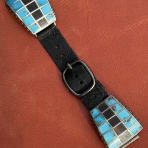 Vintage Sterling Silver Inlaid with Turquoise & Tortoise Shell Watch Band