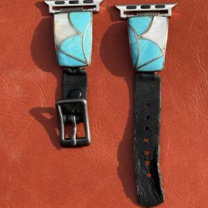 Vintage Sterling Silver Inlaid with Turquoise & Mother of Pearl Watch Band