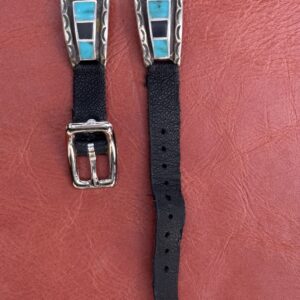 Vintage Sterling Silver Inlaid with Turquoise & Onyx Watch Band