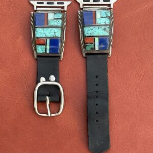 Vintage Sterling Silver Inlaid with Turquoise, Lapis, Coral, Onyx & Opal Watch Band