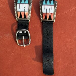 Vintage Sterling Silver Inlaid with Turquoise, Coral & Mother of Pearl Watch Band