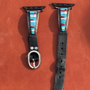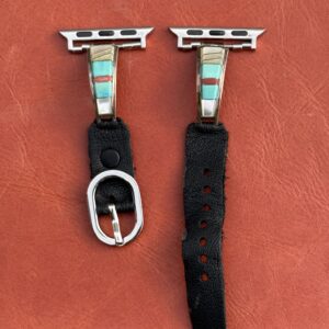 Vintage Sterling Silver Inlaid with Turquoise & Onyx Watch Band
