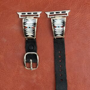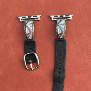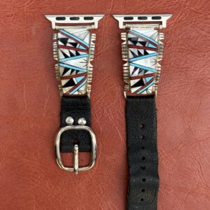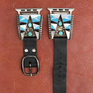 Vintage Sterling Silver Inlaid with Turquoise, Onyx & Mother of Pearl Watch Band