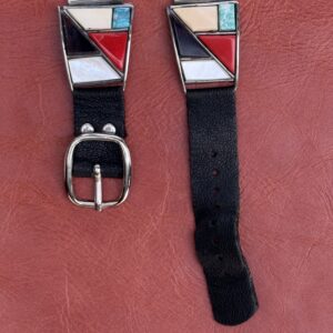 Vintage Sterling Silver Inlaid with Turquoise, Coral, Onyx & Mother of Pearl Watch Band