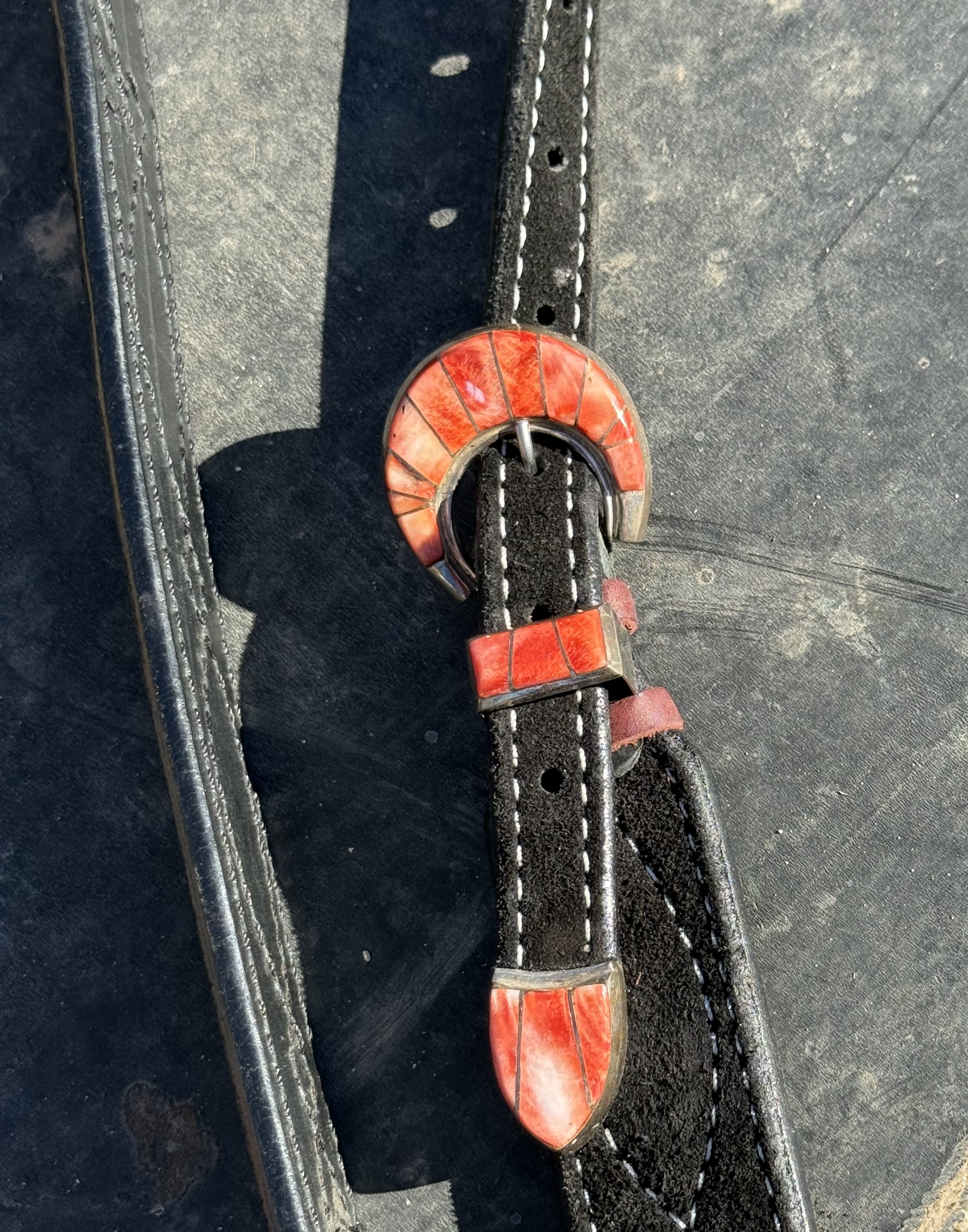 Black Suede Leather Split Ear Headstall with Vintage Sterling Silver Buckle Set