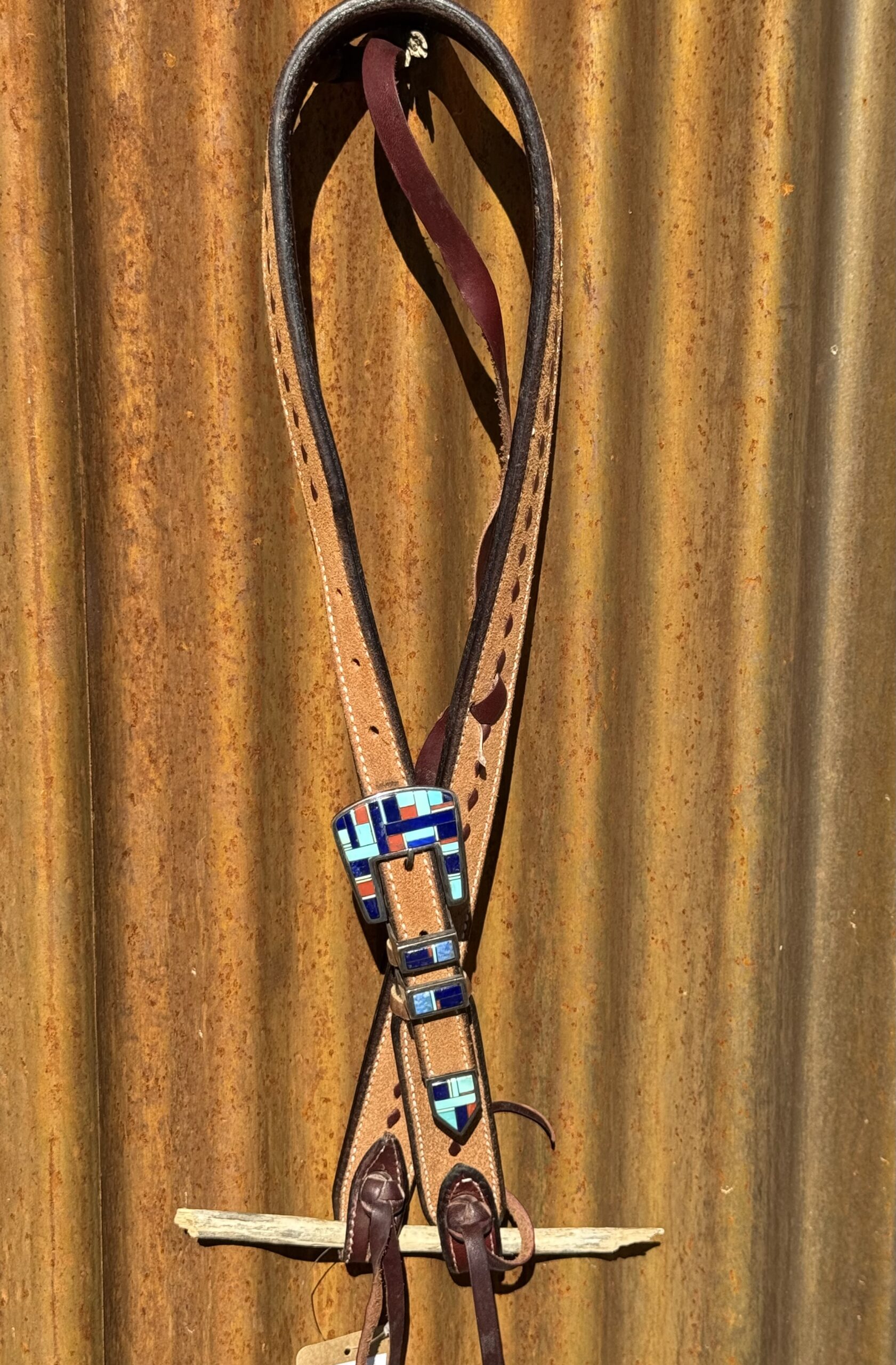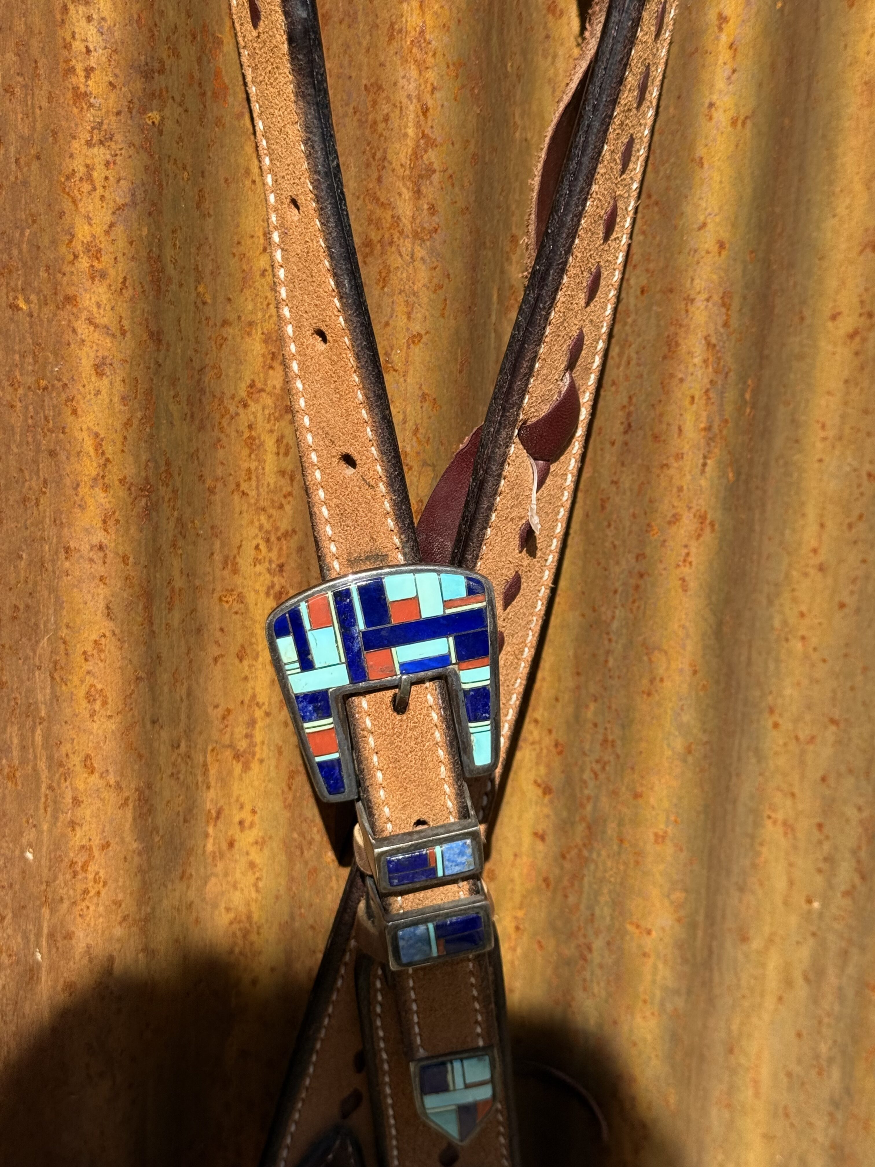 Slip Ear Rough Out with Latigo Buckstitch Headstall with Vintage Sterling Silver Headstall
