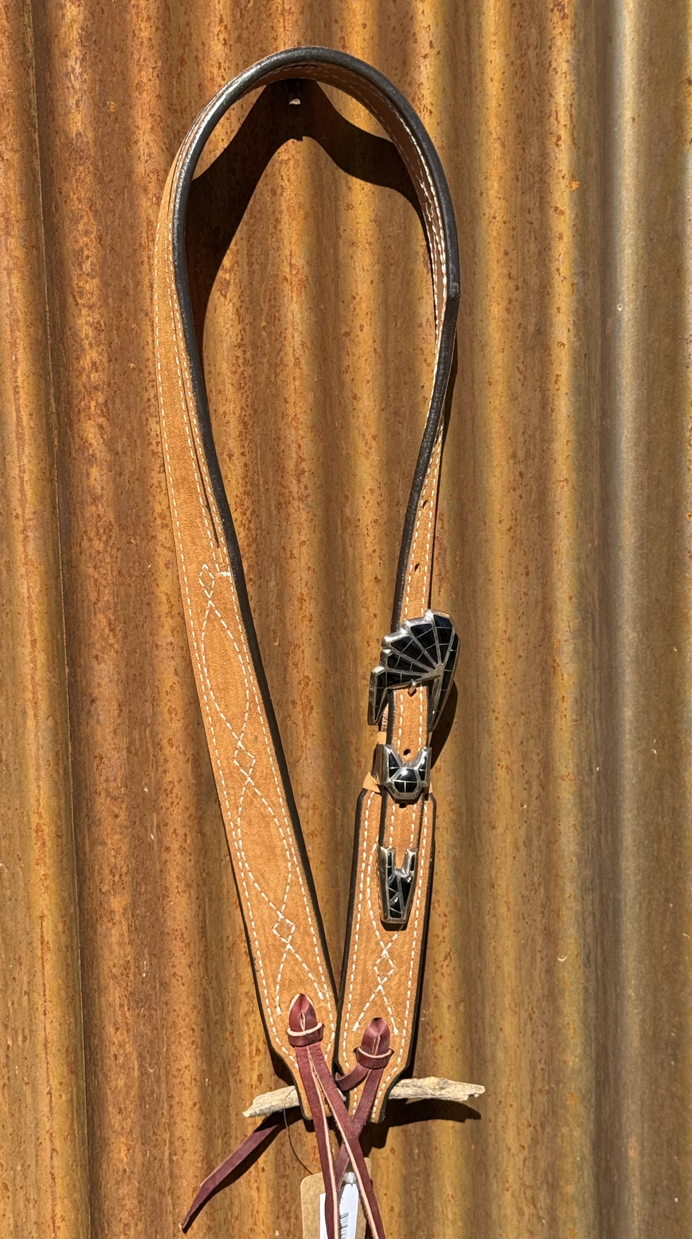 Premium toast suede leather Split ear Headstall lined in natural leather, stitched in white thread with a classic Gunslinger pattern!