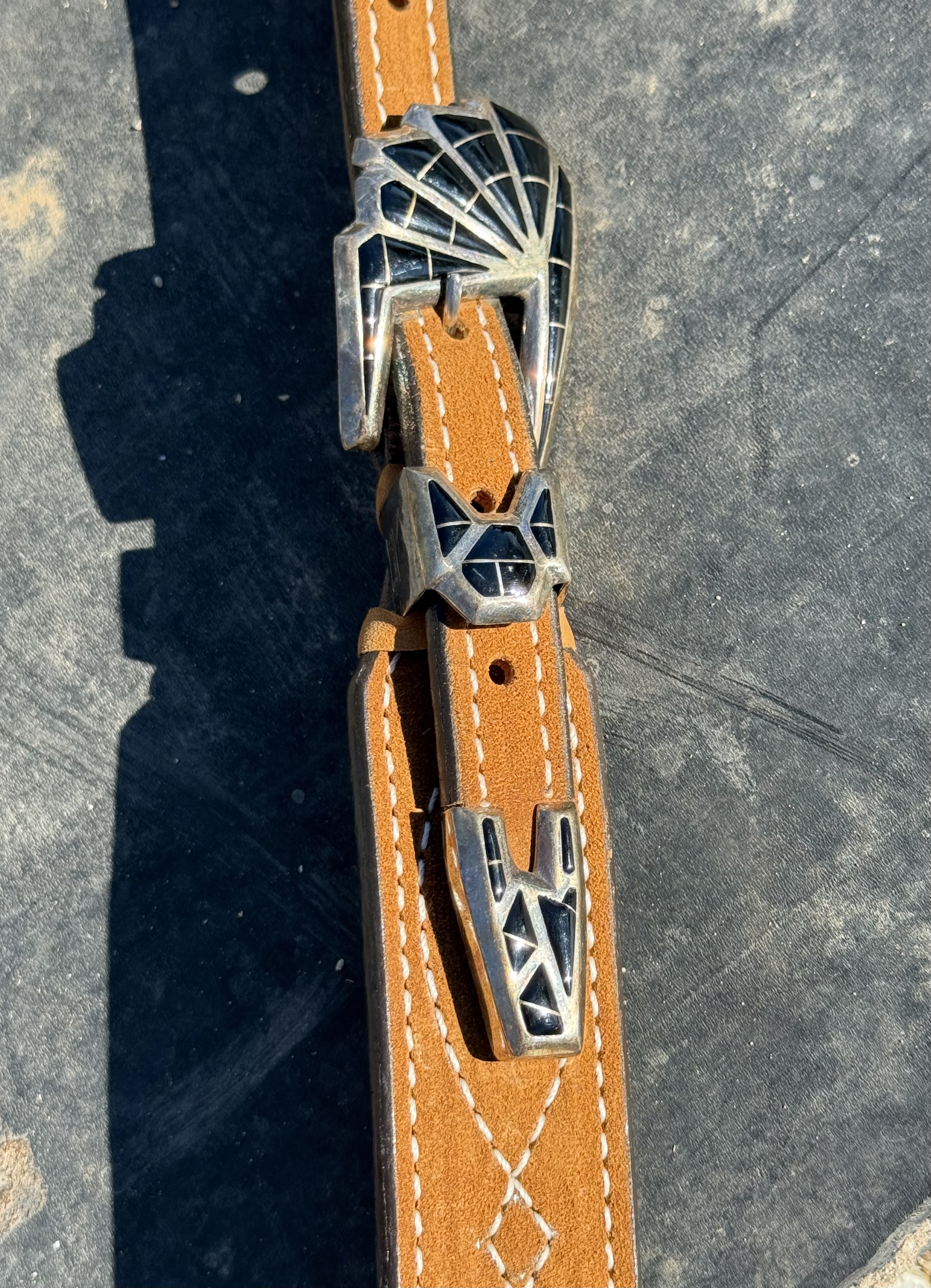 Vintage Sterling Silver with Inlaid Onyx Buckle Set.
