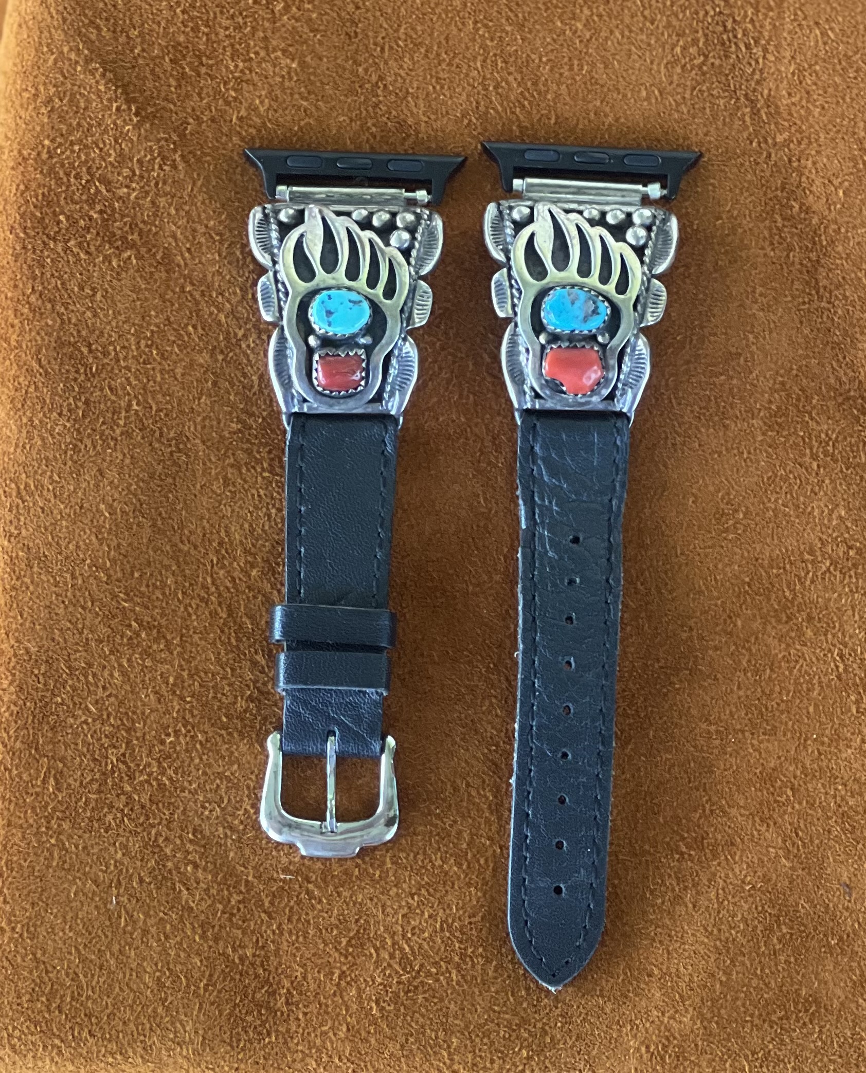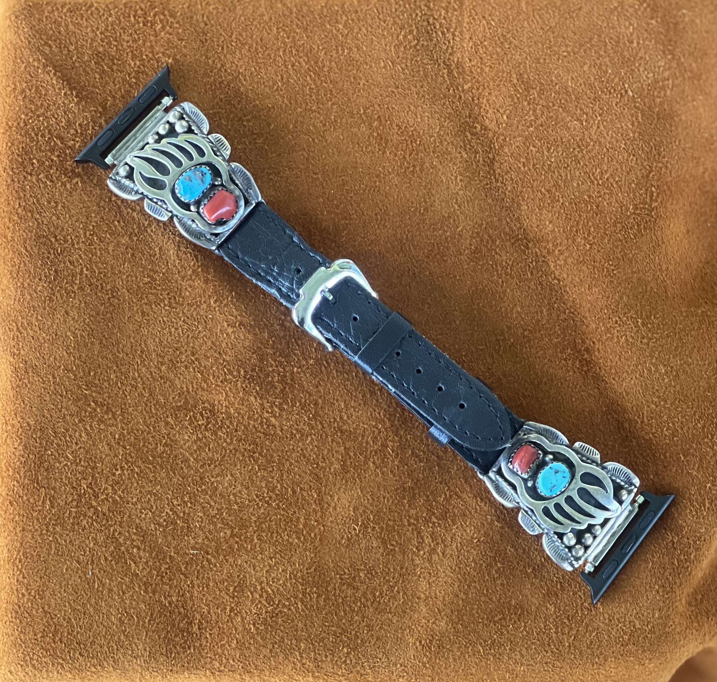 Vintage Sterling Silver Bear Claw with Turquoise & Coral Apple Watch Band