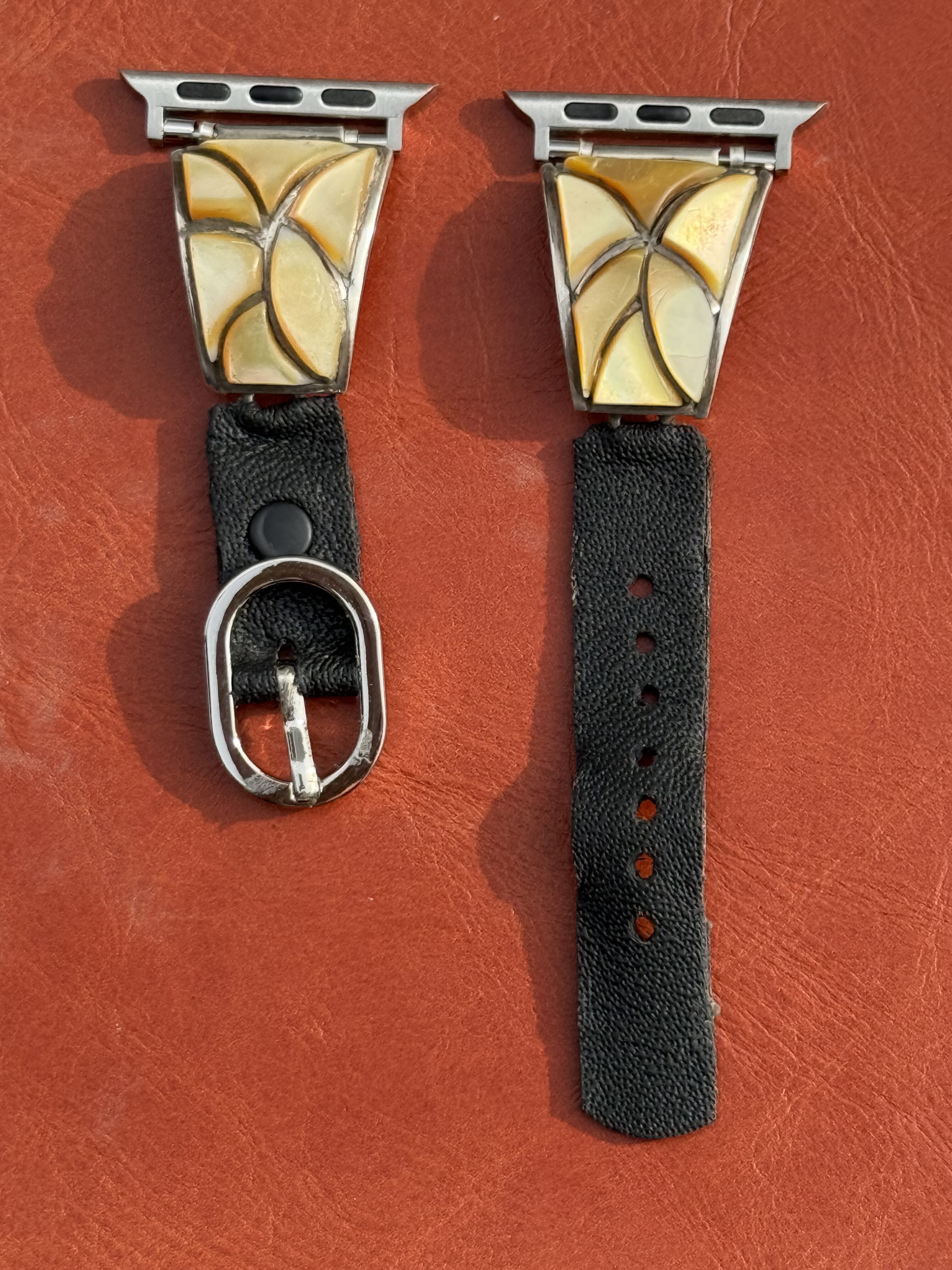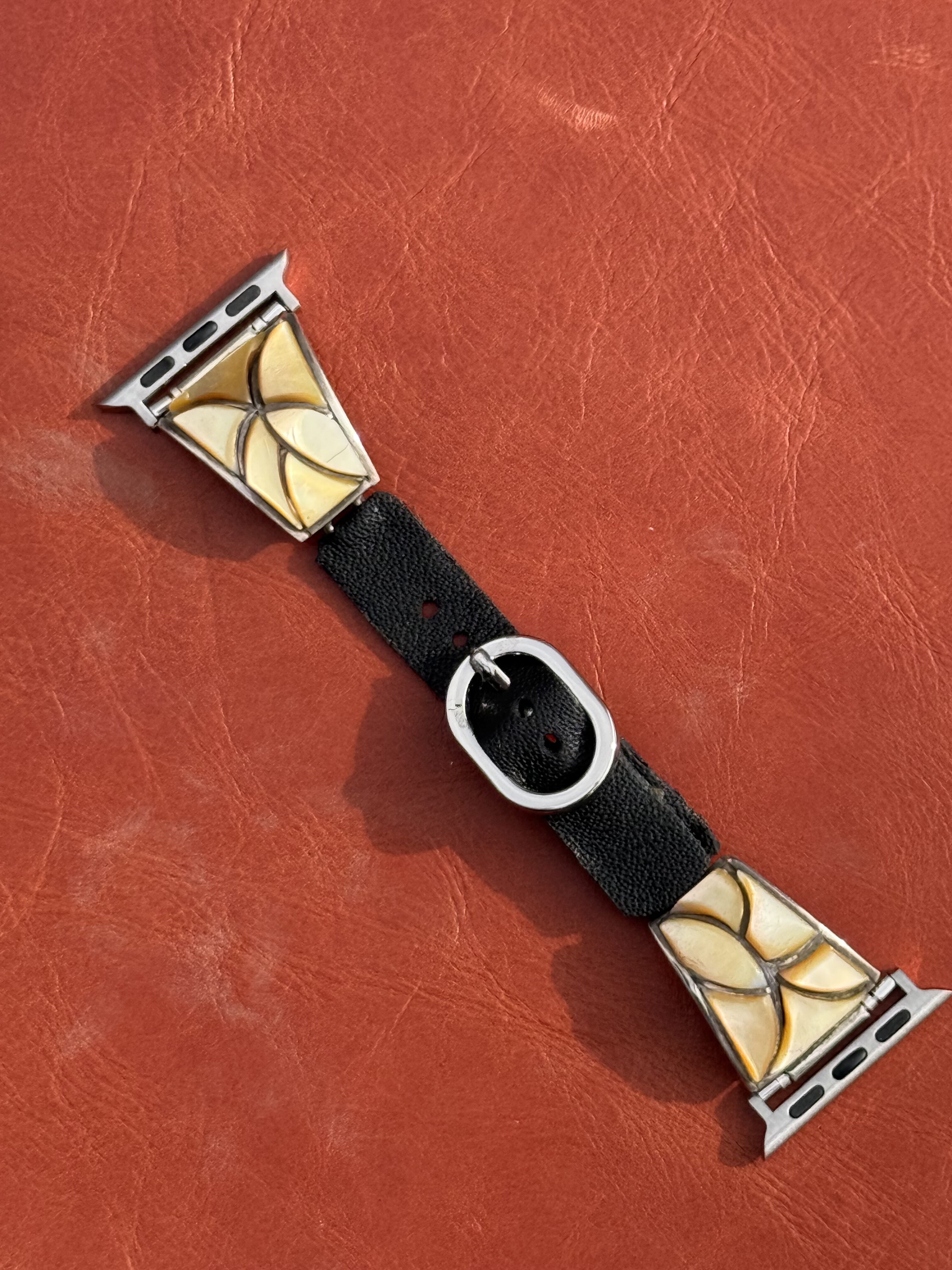 Vintage Sterling Silver Inlaid with Mother of Pearl Watch Band