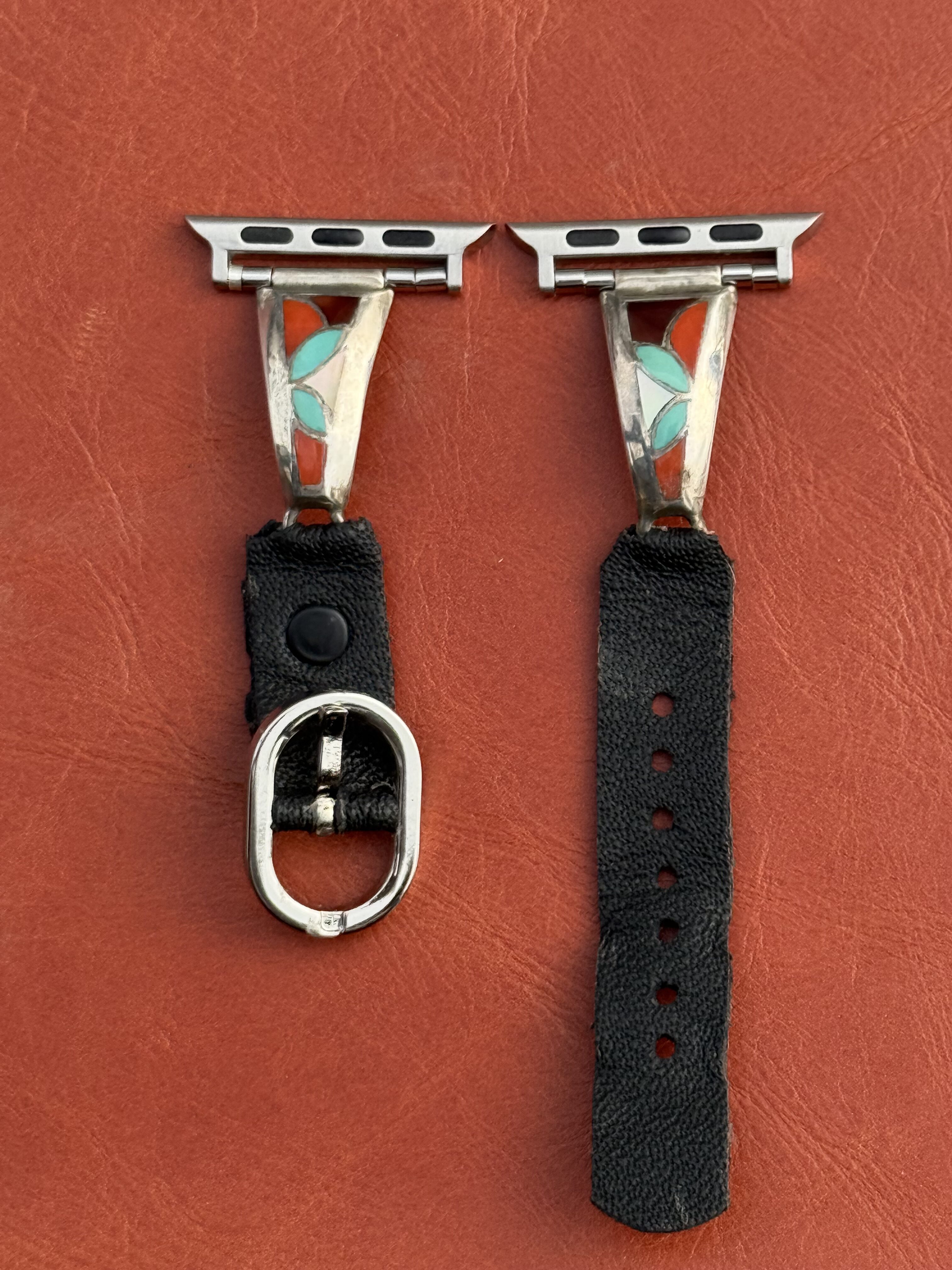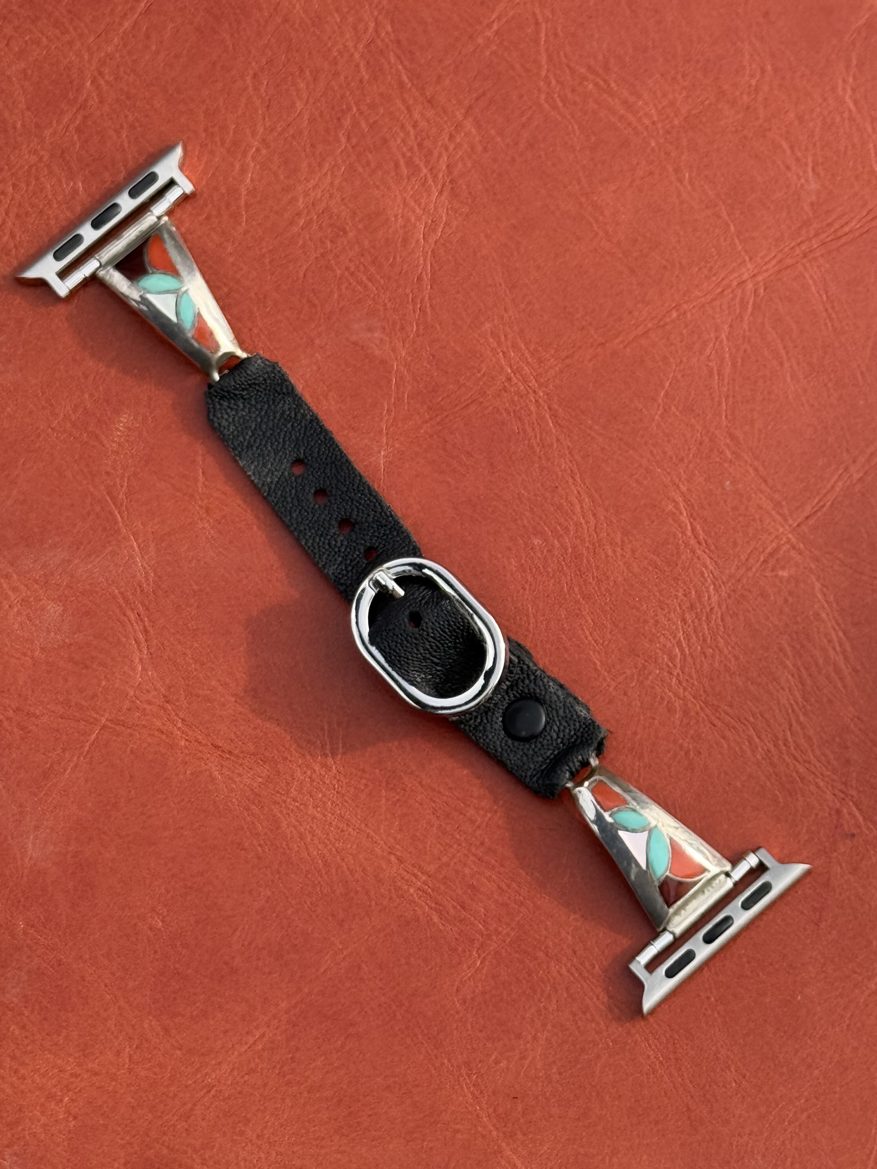 Vintage Sterling Silver Inlaid with Turquoise, Coral, Sugalite & Mother of Pearl Watch Band