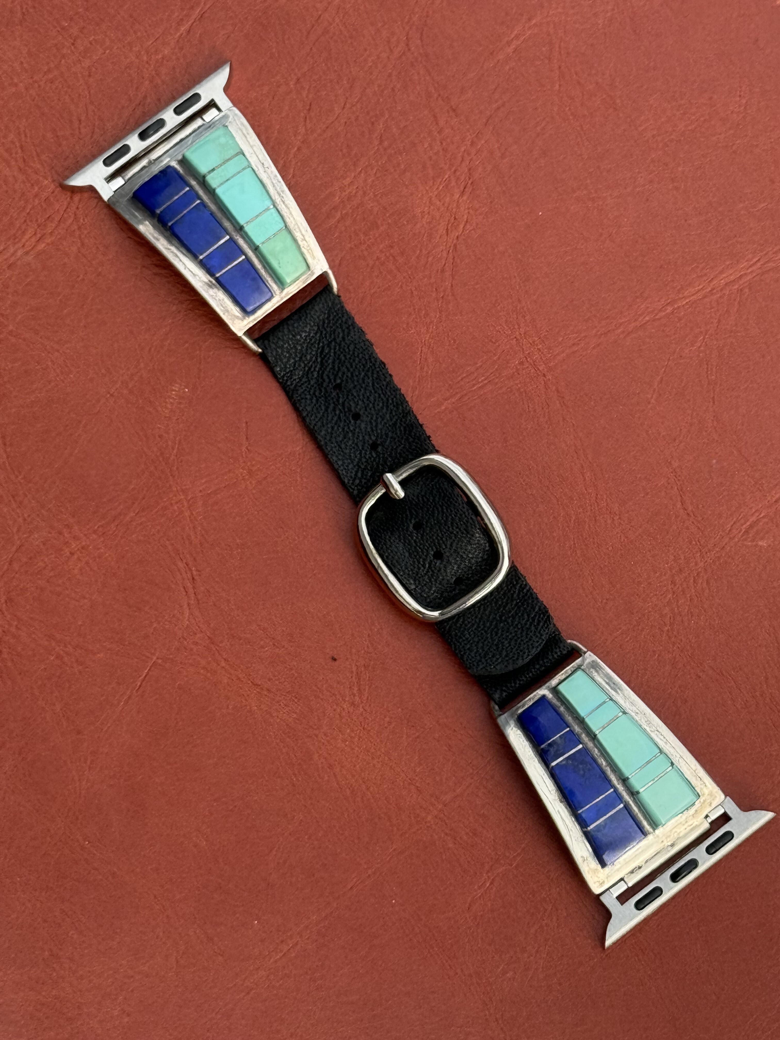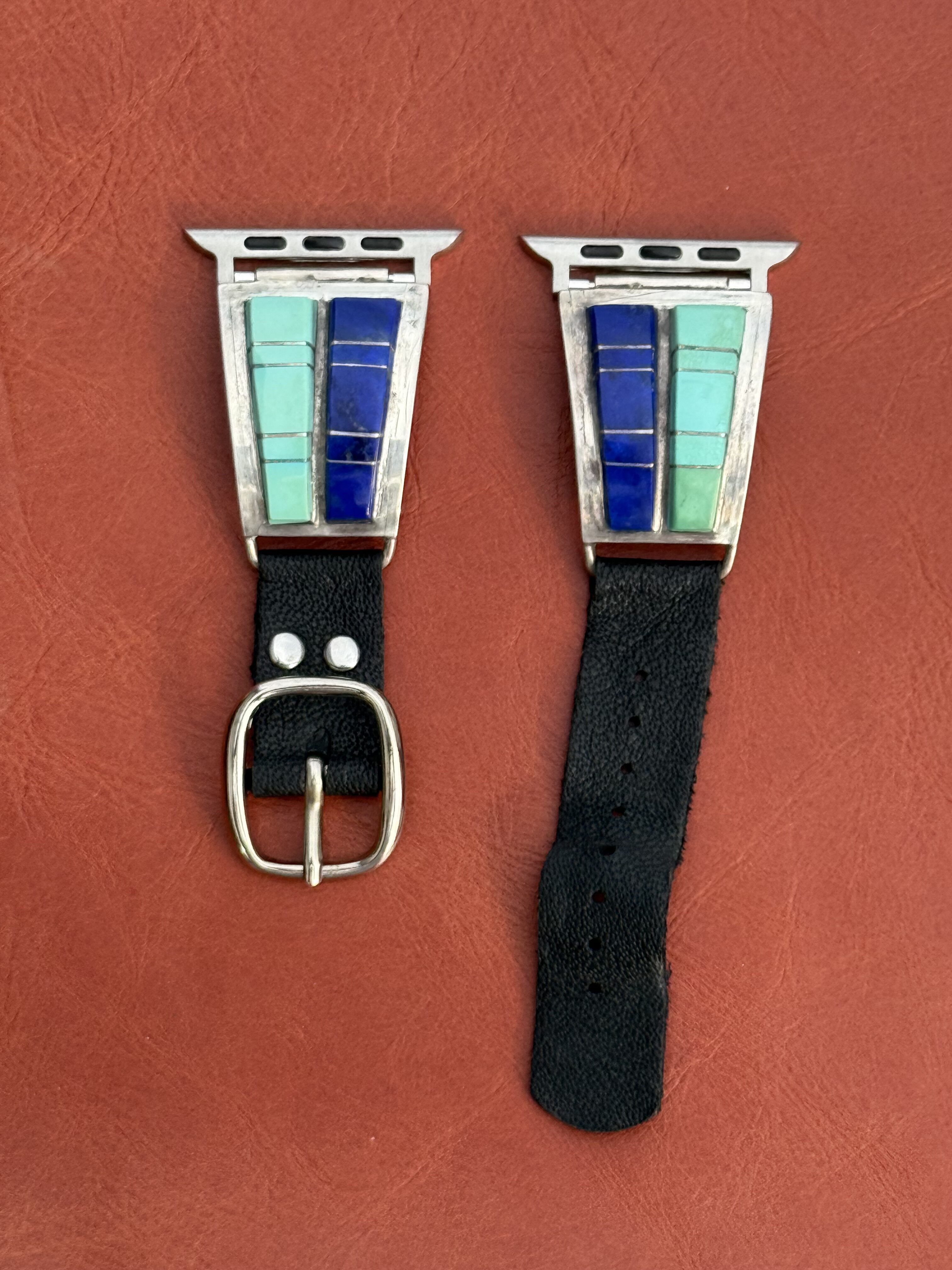 Vintage Sterling Silver Inlaid with Turquoise & Lapis Watch Band