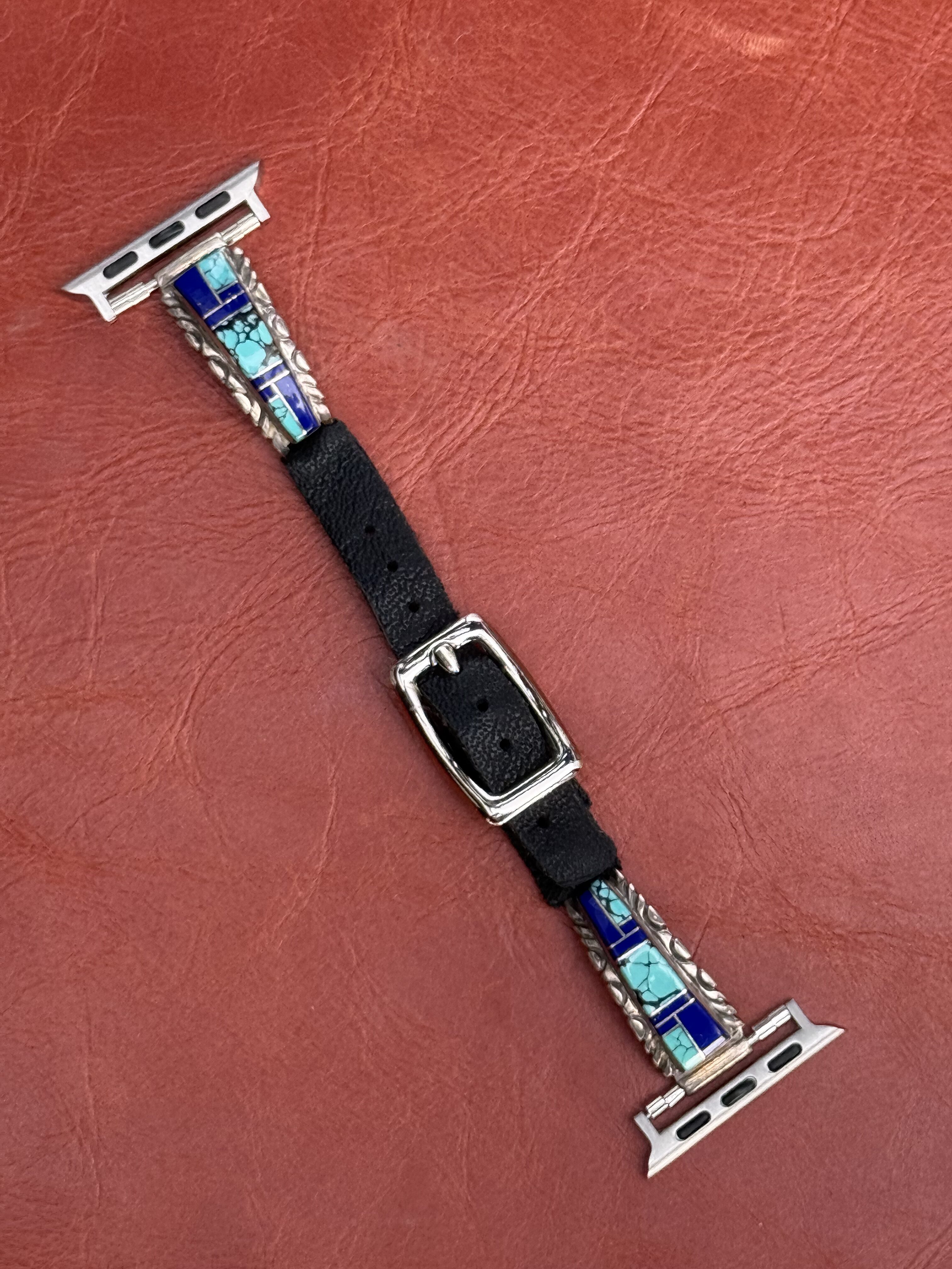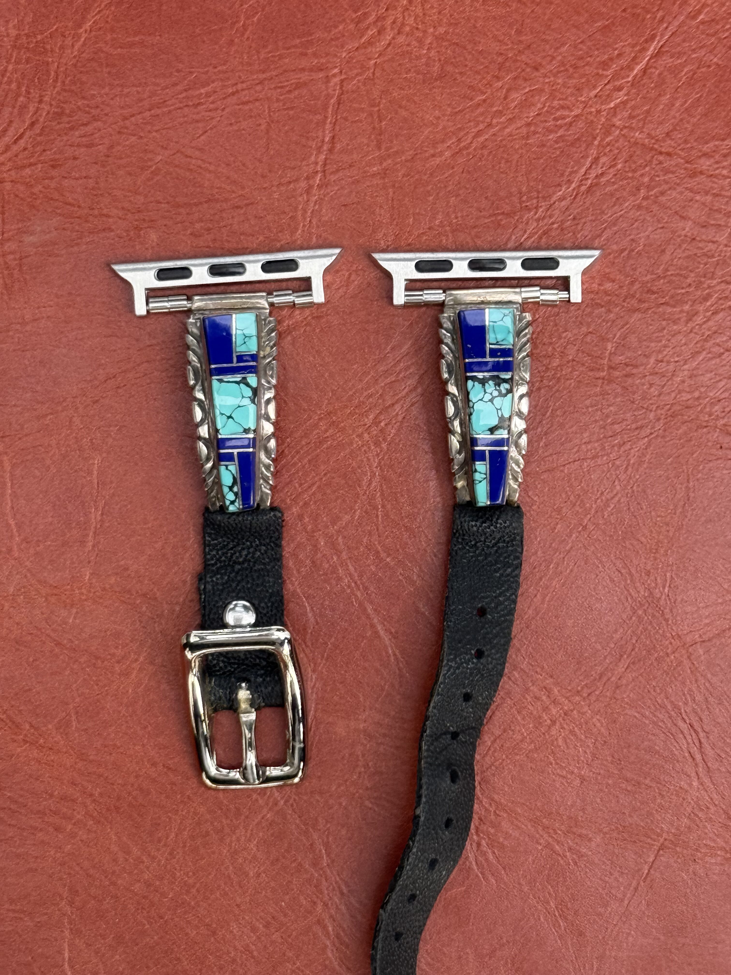 Vintage Sterling Silver Inlaid with Turquoise & Lapis Watch Band