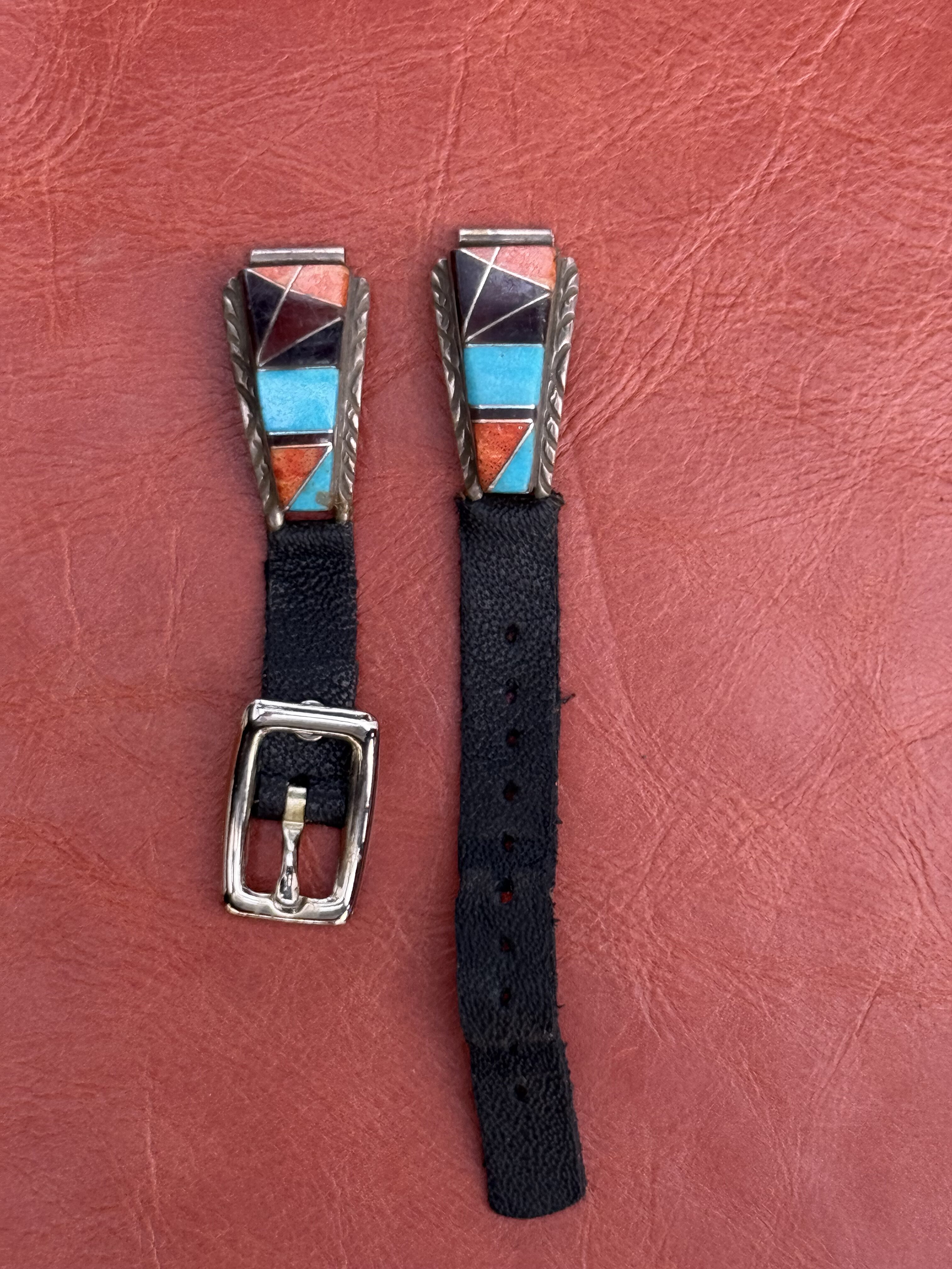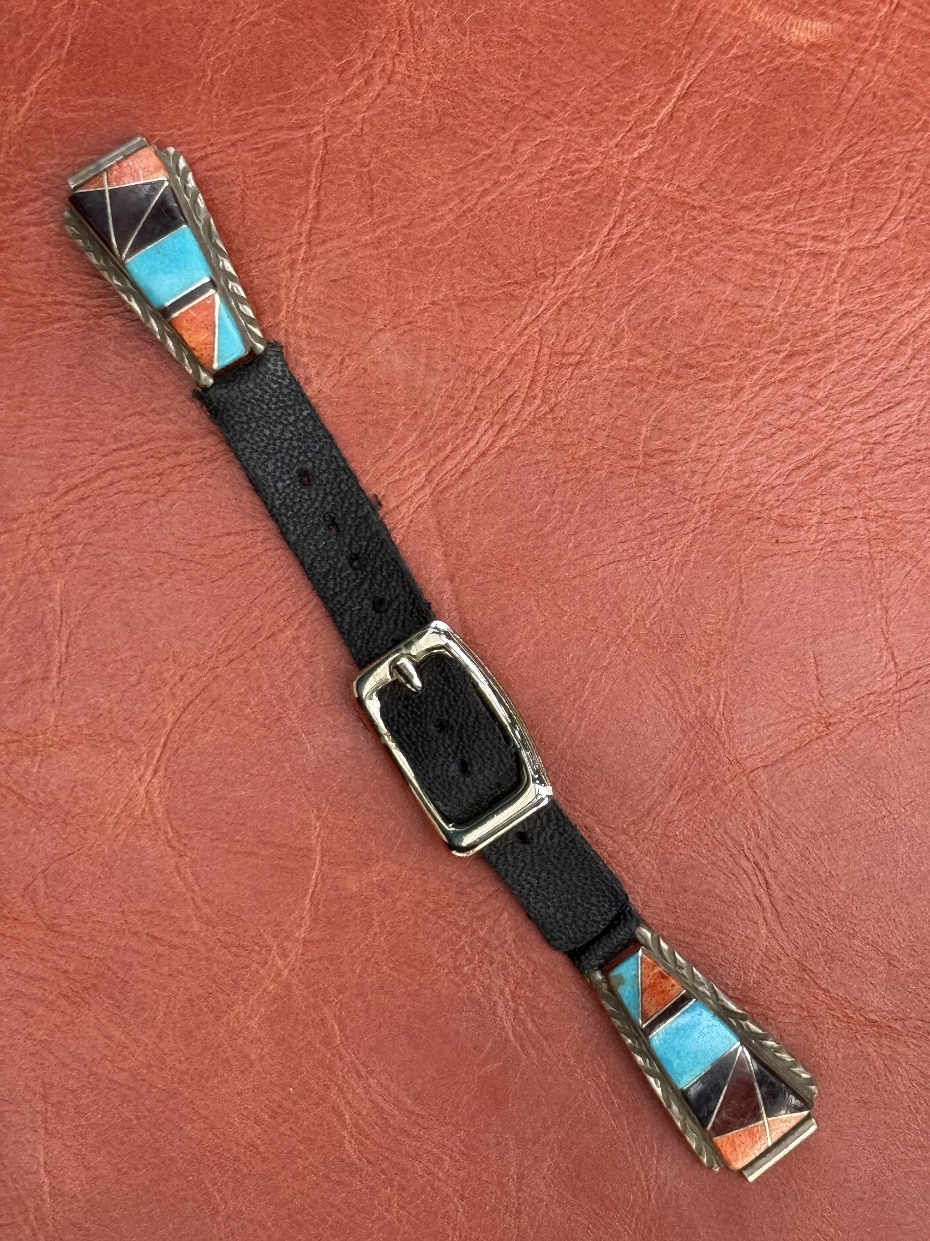 Vintage Sterling Silver Inlaid with Turquoise, Spiny Oyster, Sugalite & Onyx Watch Band