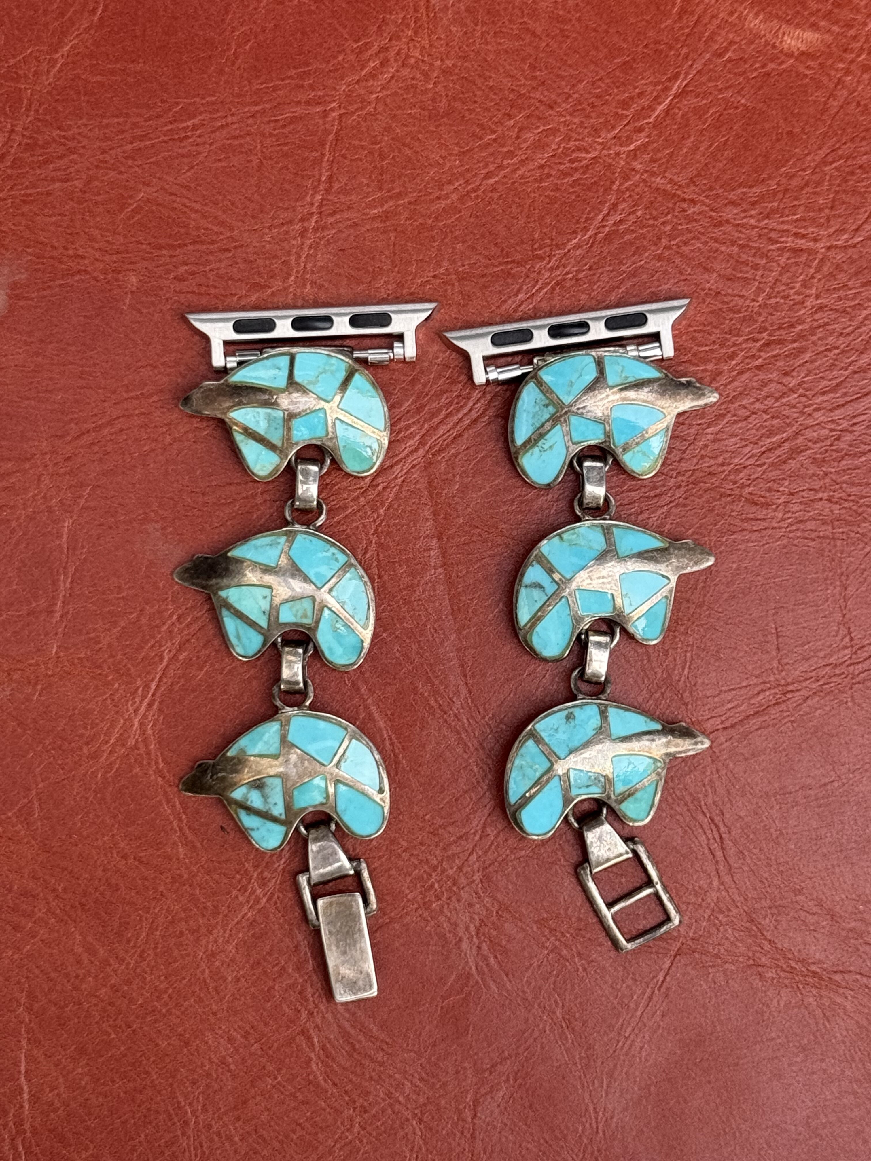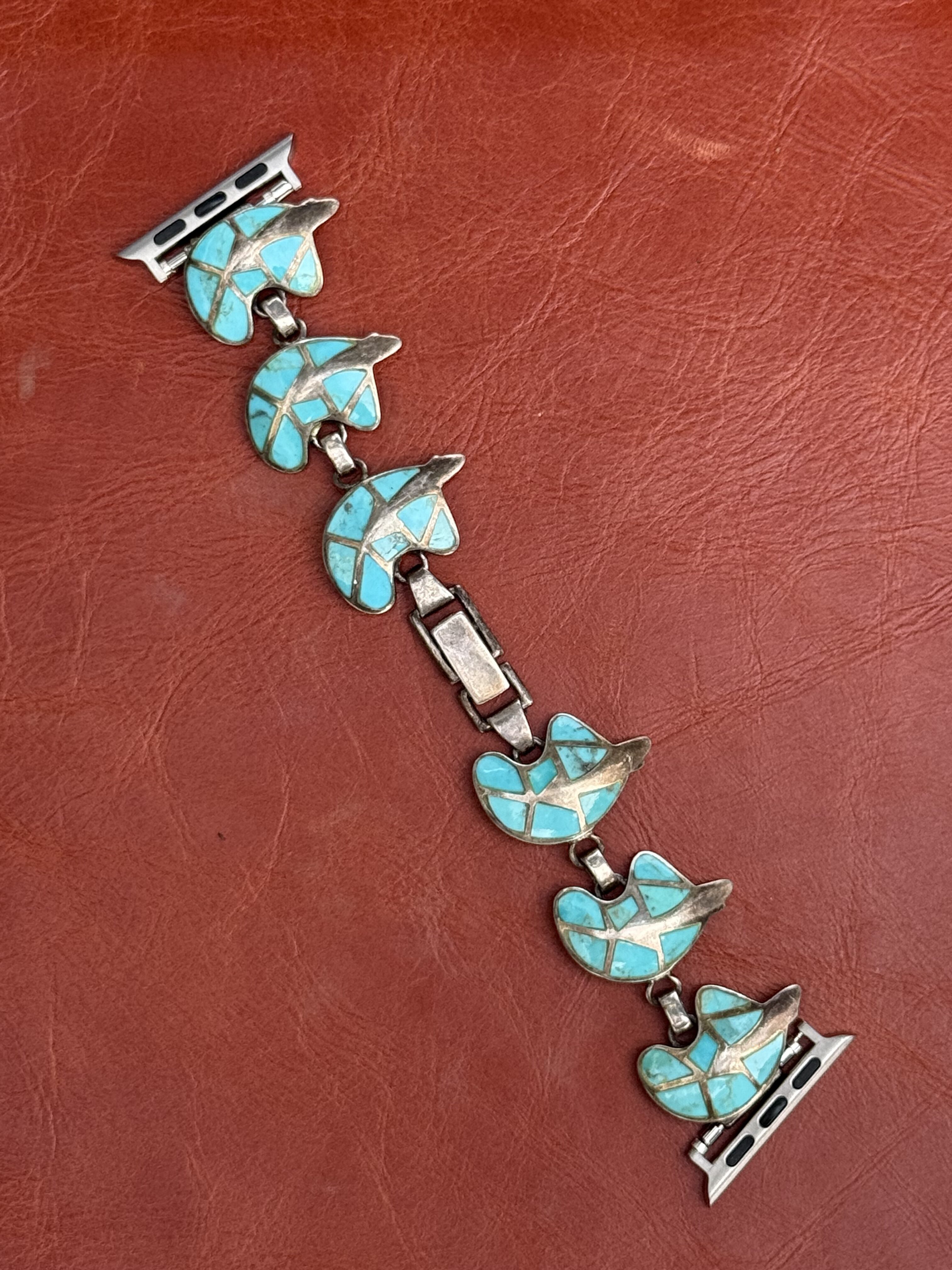 Vintage Sterling Silver Inlaid with Turquoise Stones Watch Band