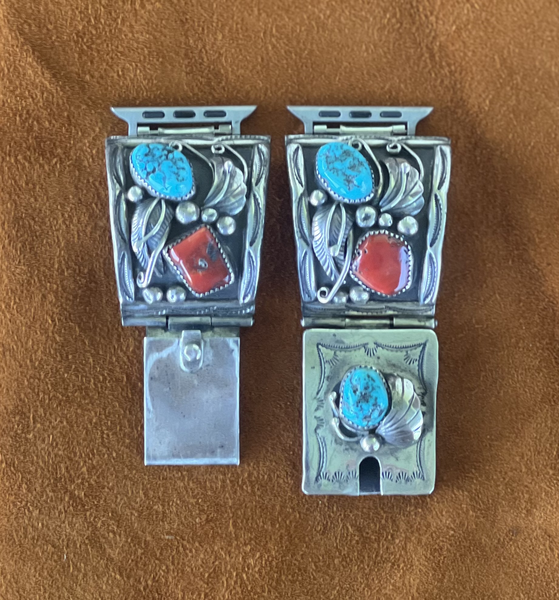 Vintage Sterling Silver with Turquoise & Coral  Apple Watch Band