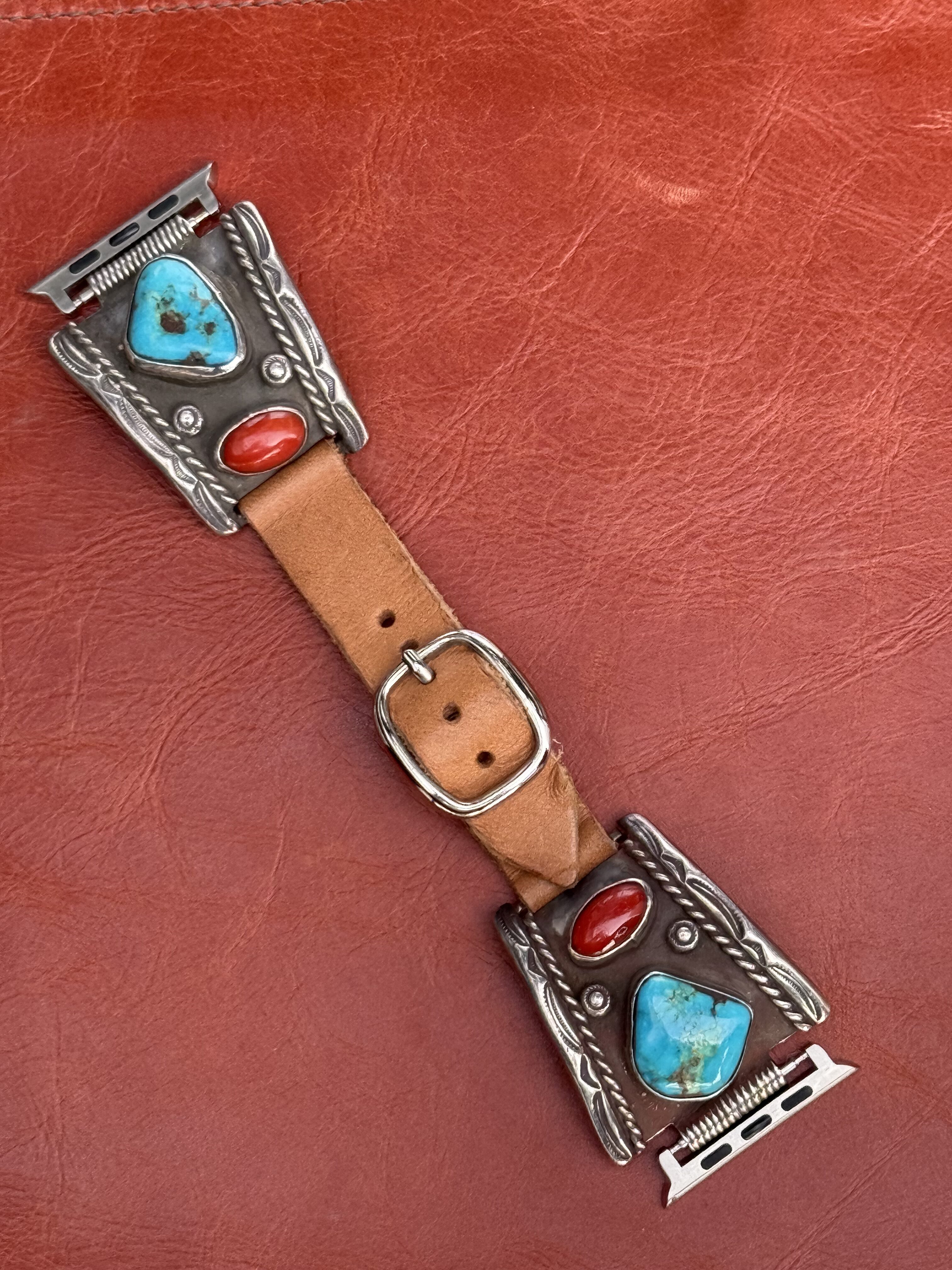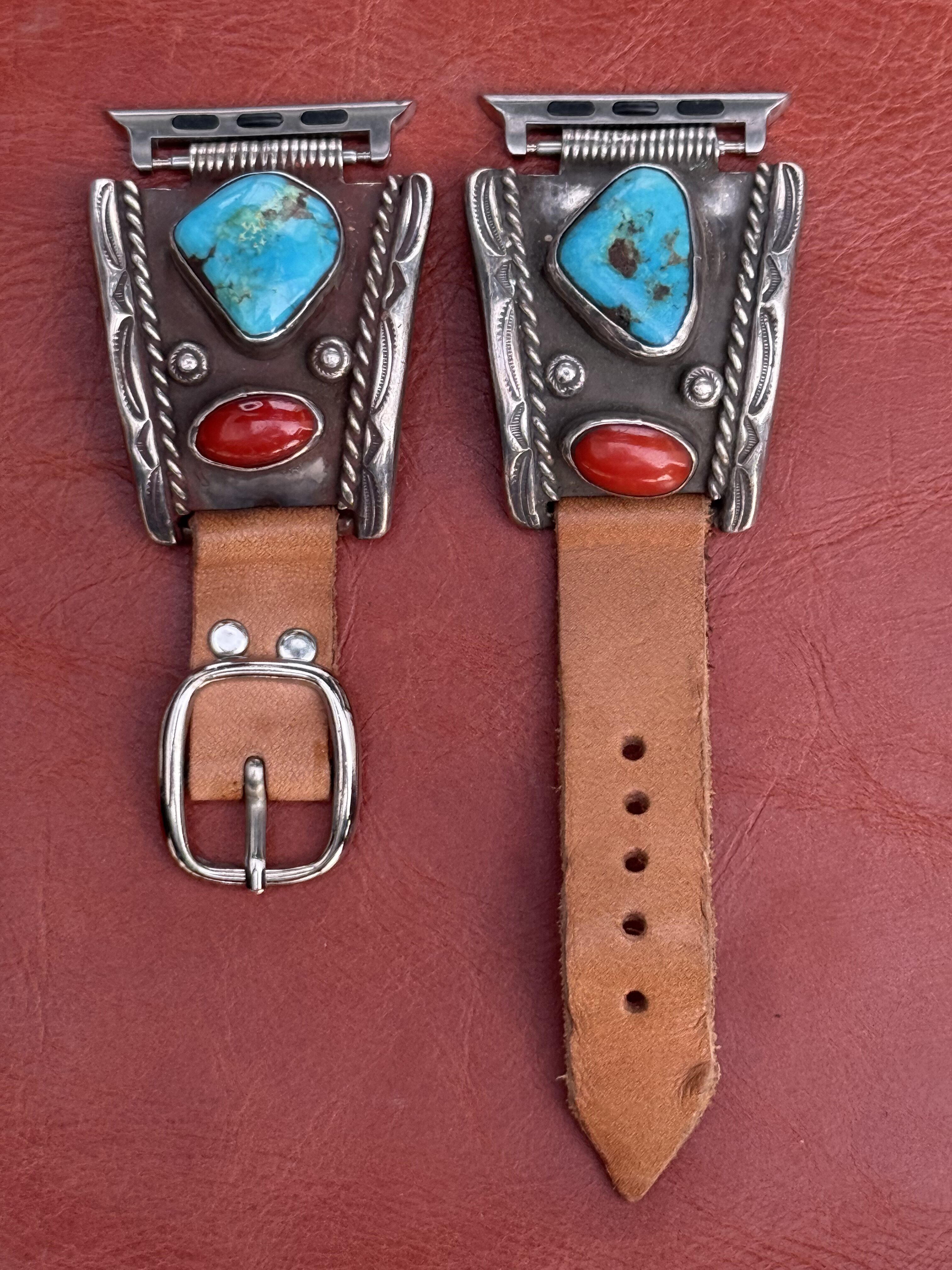 Vintage Sterling Silver with Turquoise Stones & Coral Watch Band
